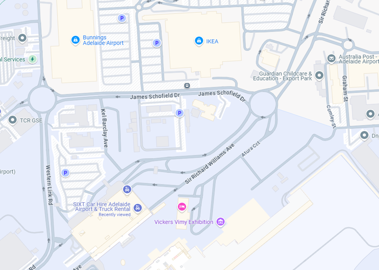 - Approach Adelaide Airport from Sir Hubert Wilkins Road.